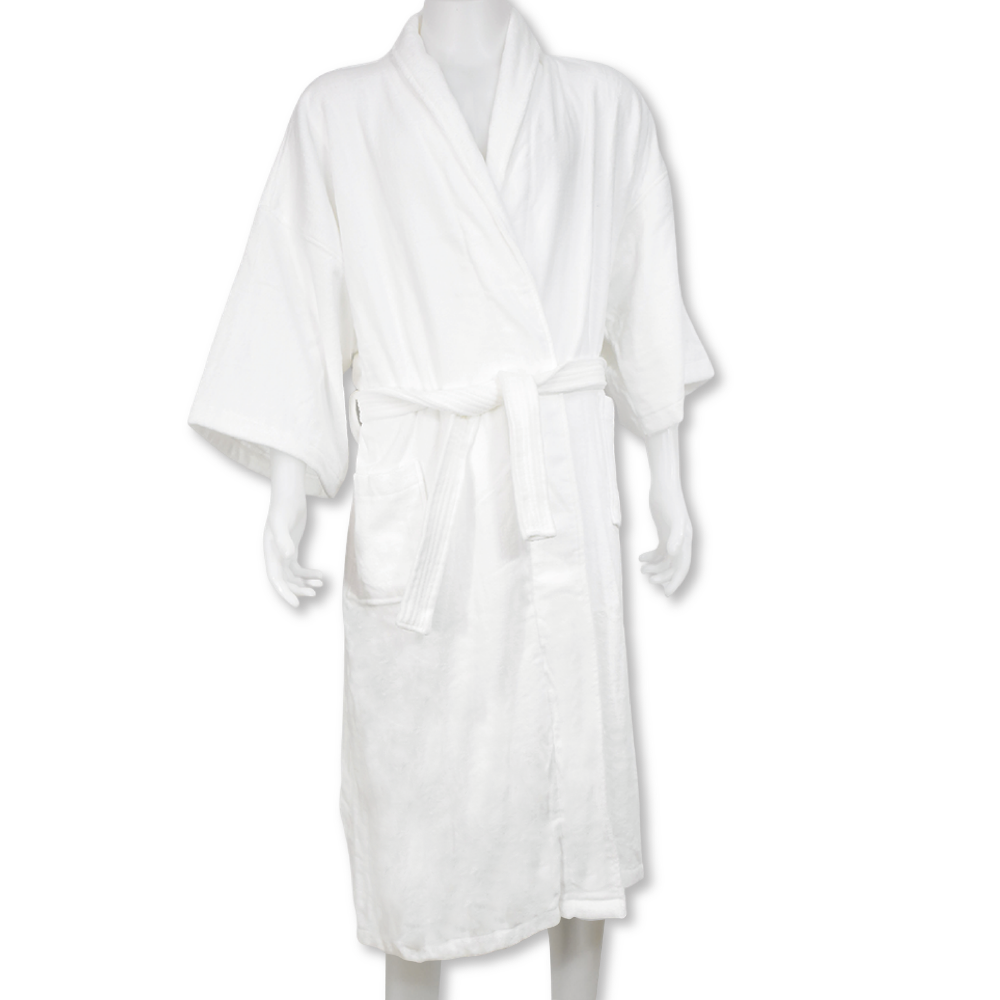 ชุดคลุมอาบน้ำ ทำจากผ้าขนหนู สีขาว # ไซต์ XL (กระเป่า 2 ด้าน)