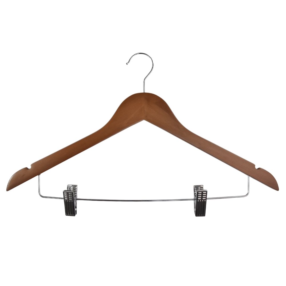 ชื่อสินค้า[TH] : ไม้แขวนเสื้อแบบตะขอธรรมดา มีตัวหนีบ 2 ตัว # สีน้ำตาลเข้ม