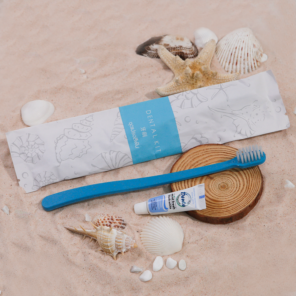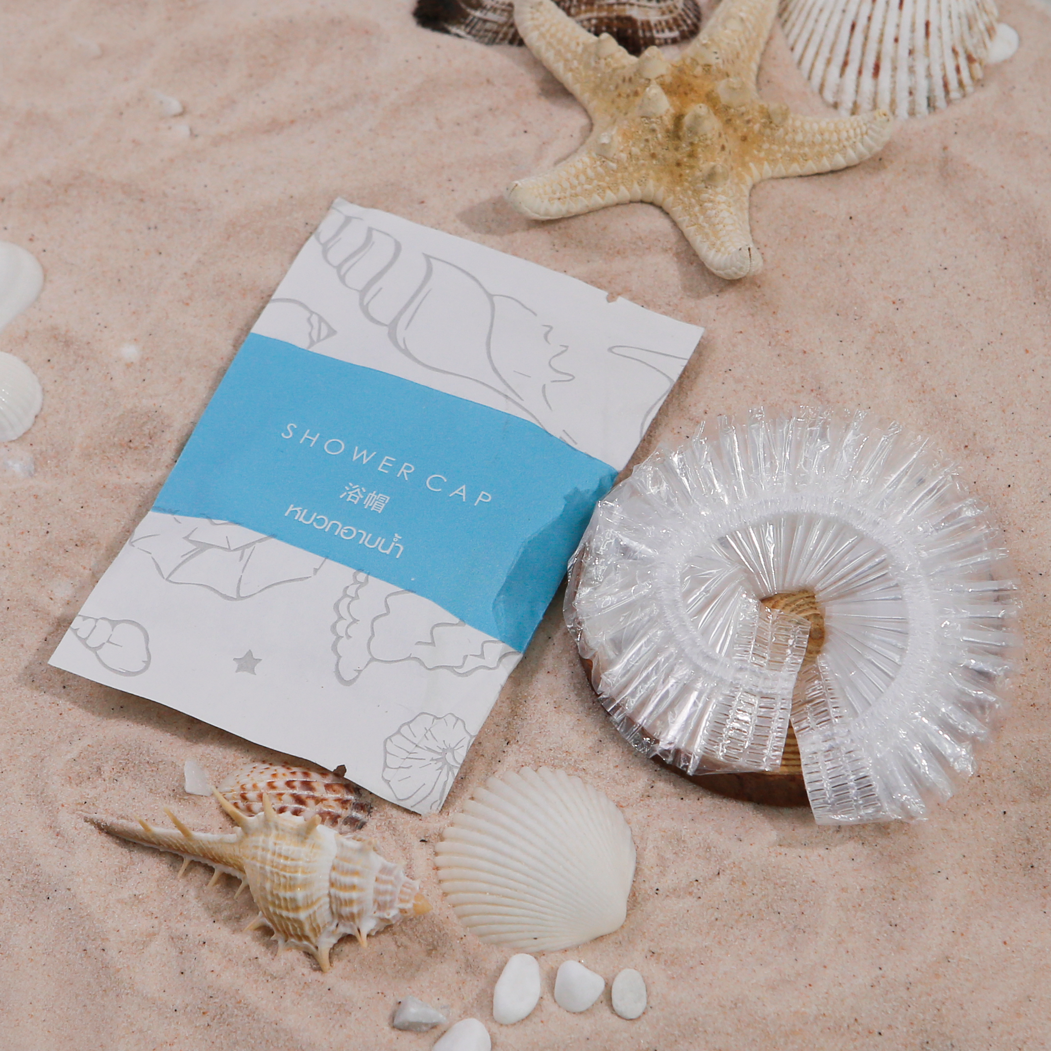 | รุ่น The Sea | Shower Gel (125/Pack), Body Lotion ( 125/Pack ), Cotton bud (100/Pack), Dental kit (125/Pack), Shampoo (125/Pack), Shower cap (100/Pack), Soap (100/Pack) |
